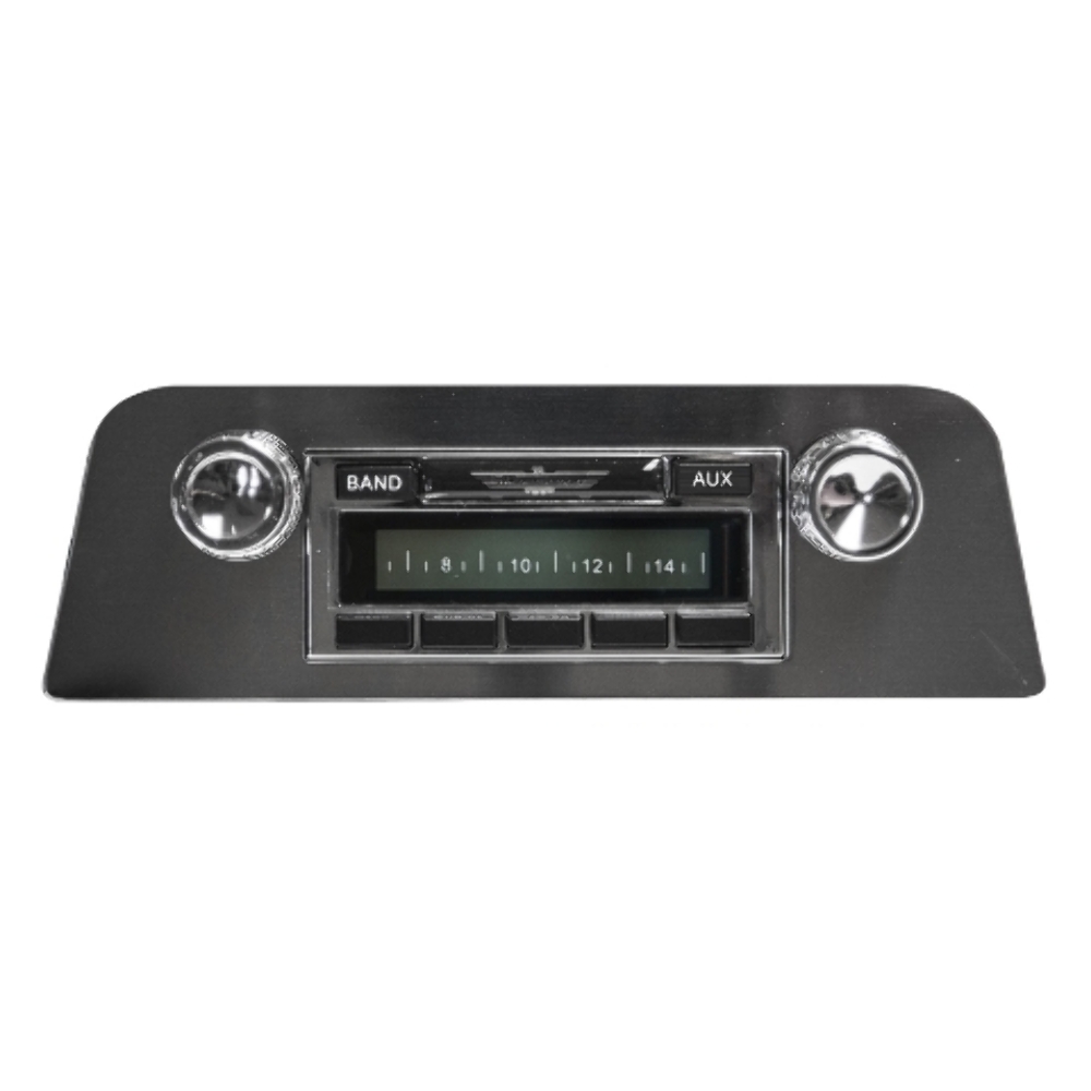 Custom Autosound has been manufacturing premium audio systems for classic vehicles since 1977 in Fullerton, California. Their products feature Ford and GM licensed bezels for authentic styling. Names vary by manufacturer, but Custom Autosound is known for vehicle-specific custom fit with no modifications required.