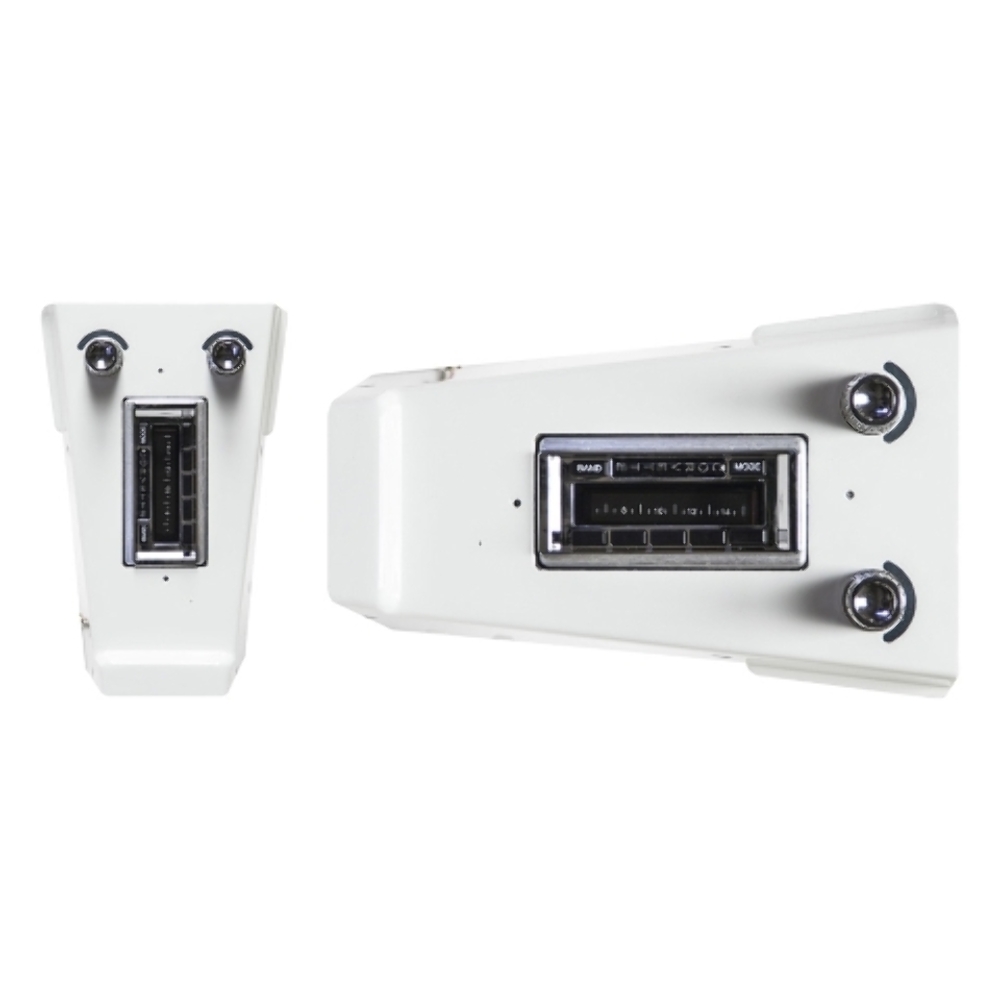 Custom Autosound has been manufacturing premium audio systems for classic vehicles since 1977 in Fullerton, California. Their products feature Ford and GM licensed bezels for authentic styling. Names vary by manufacturer, but Custom Autosound is known for vehicle-specific custom fit with no modifications required.