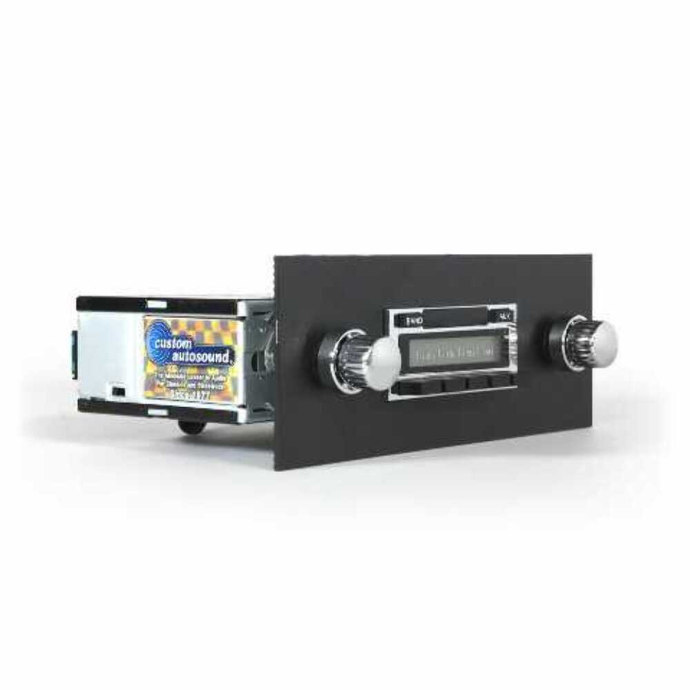 Custom Autosound has been manufacturing premium audio systems for classic vehicles since 1977 in Fullerton, California. Their products feature Ford and GM licensed bezels for authentic styling. Names vary by manufacturer, but Custom Autosound is known for vehicle-specific custom fit with no modifications required.