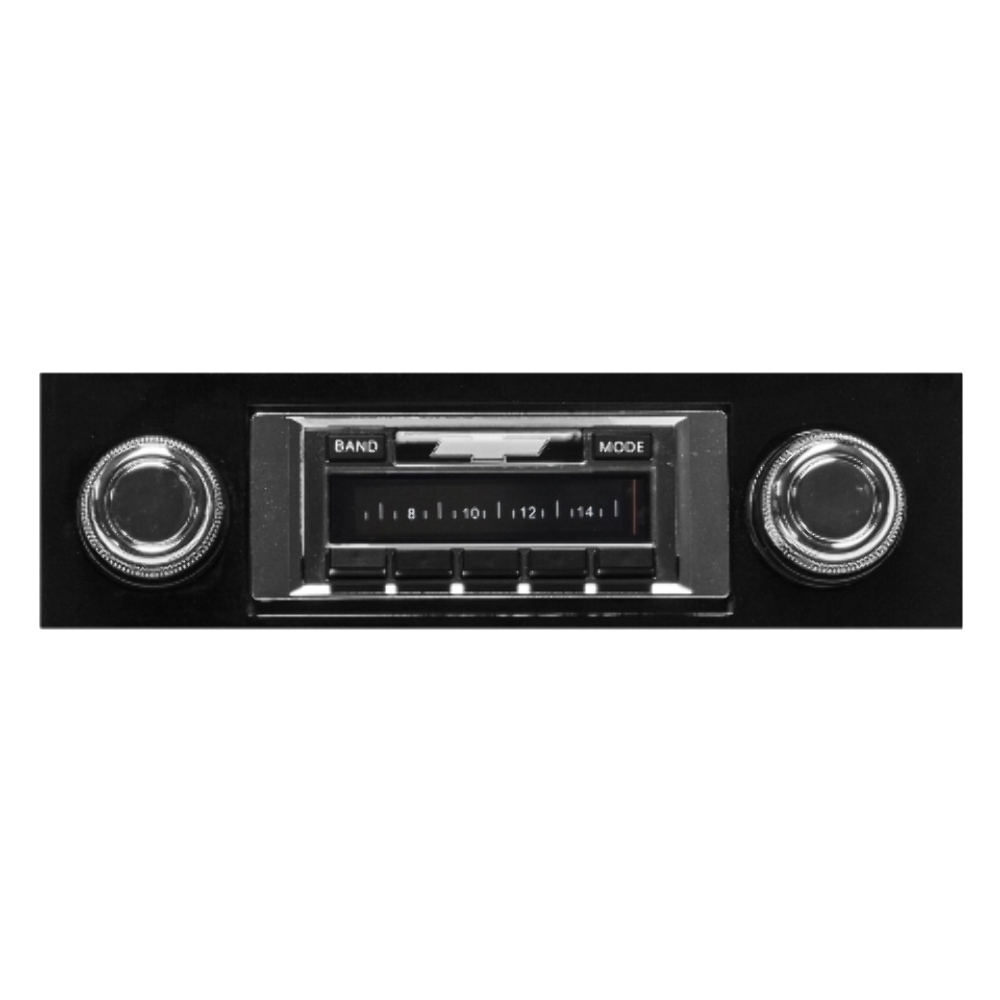 Custom Autosound has been manufacturing premium audio systems for classic vehicles since 1977 in Fullerton, California. Their products feature Ford and GM licensed bezels for authentic styling. Names vary by manufacturer, but Custom Autosound is known for vehicle-specific custom fit with no modifications required.