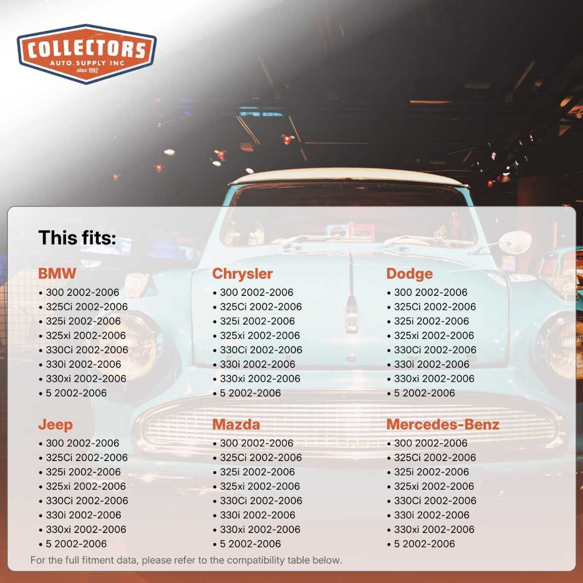 You can purchase this product directly from Collectors Auto Supply, where we specialize in classic car restoration parts and accessories. Finding the perfect part for your classic car can be difficult, and even frustrating. And let us be honest. What makes it worse is a general lack of customer love in the industry. That is why we are here, and that is why we are different. We are car people just like you, and we know what you need. And if we do not already know it, we're listening. So, contact us if you need help finding a part, or have an idea for how to improve our website, or anything else. Or if you want to do it the old-fashioned way, give us a call at 1 (800) 414-4462.