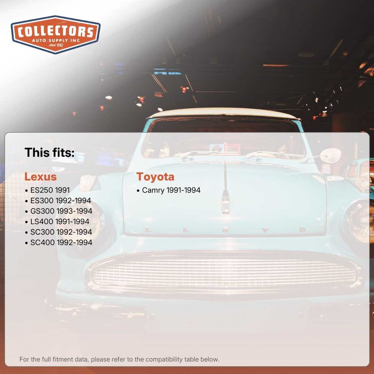 You can purchase this product directly from Collectors Auto Supply, where we specialize in classic car restoration parts and accessories. Finding the perfect part for your classic car can be difficult, and even frustrating. And let us be honest. What makes it worse is a general lack of customer love in the industry. That is why we are here, and that is why we are different. We are car people just like you, and we know what you need. And if we do not already know it, we're listening. So, contact us if you need help finding a part, or have an idea for how to improve our website, or anything else. Or if you want to do it the old-fashioned way, give us a call at 1 (800) 414-4462.
