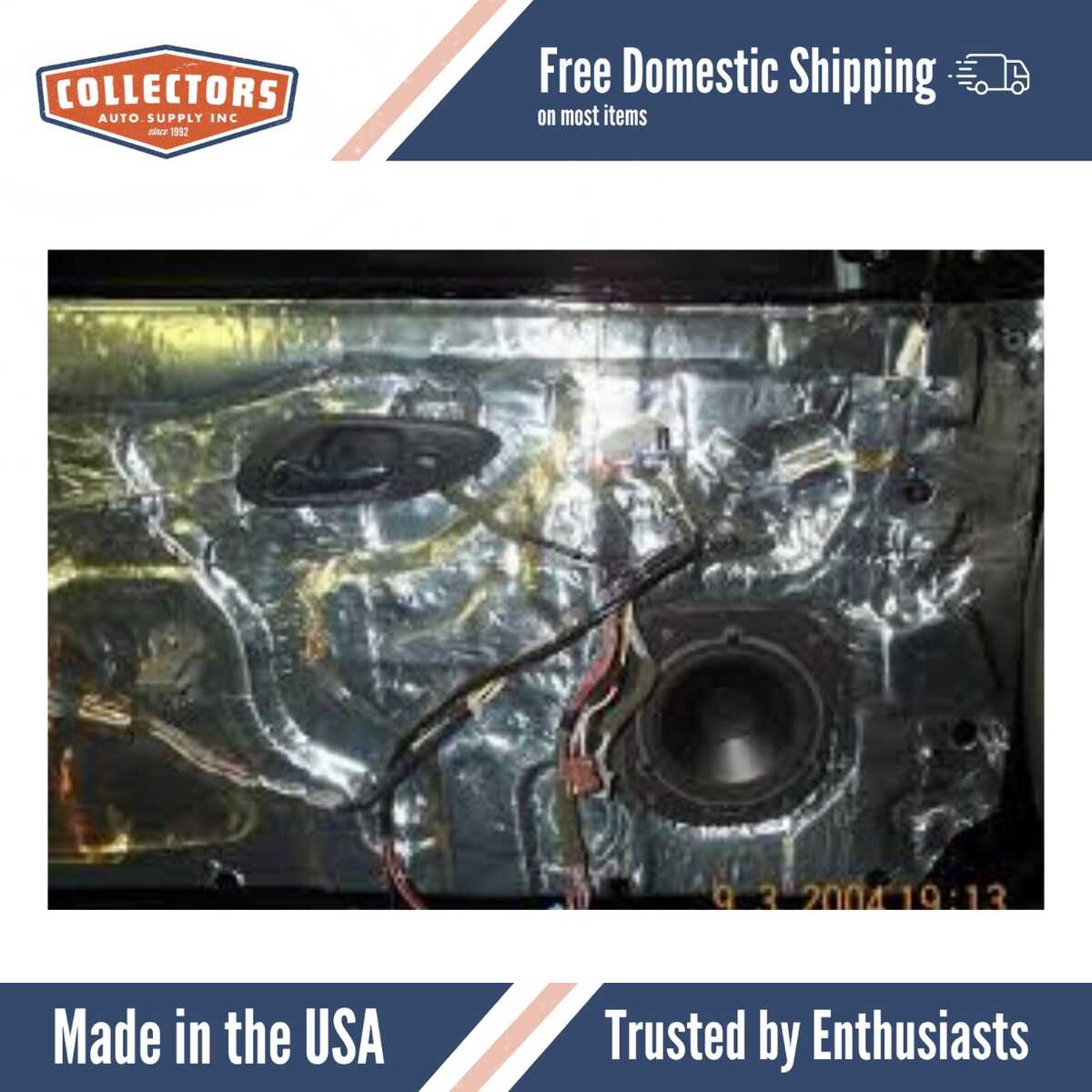 With our Sound Deadener installed, you can show off the awesome rumble of your V-8 or small block engine without melting your shoes or wearing ear protection! Our insulation reduces thermal transfer by more than 70% and noise by more than 50%!! It also effortlessly cuts and shapes to the firewall, floor pan, tunnel, roof, doors, and trunk!