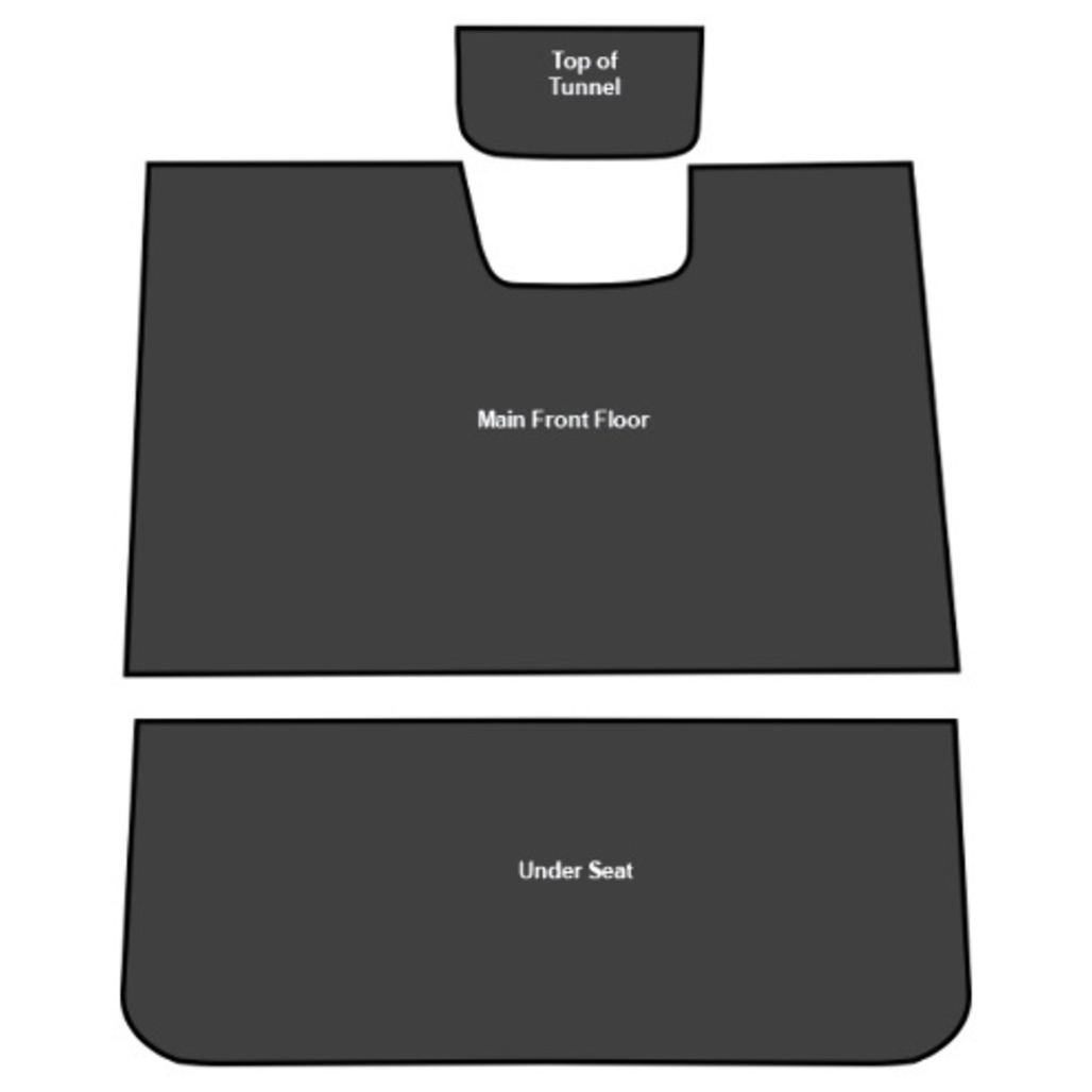 This carpet covers the Complete area of the vehicle. This kit will arrive in 2 pieces, with all the edges trimmed and surging complete.