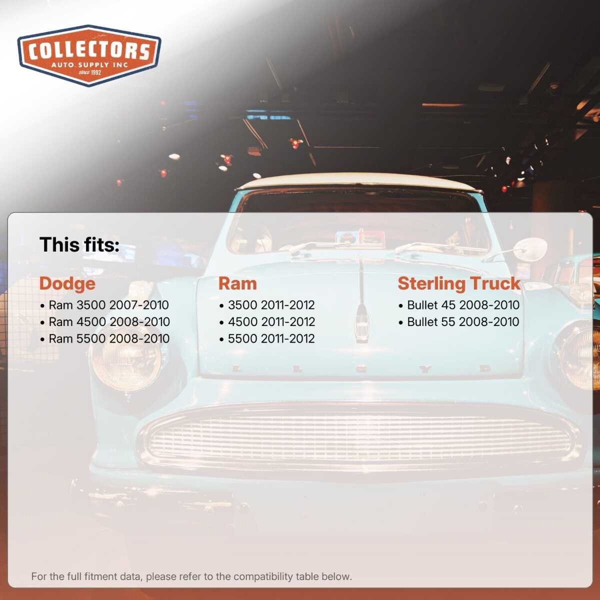 Collectors Auto Supply offers premium replacement auto parts and the experience to get you the right parts for your vehicle. Our group of experts has a combined knowledge of more than a half-century specializing in classic restoration components. Together, we’ve been making old rides new again for more than 25 years.
