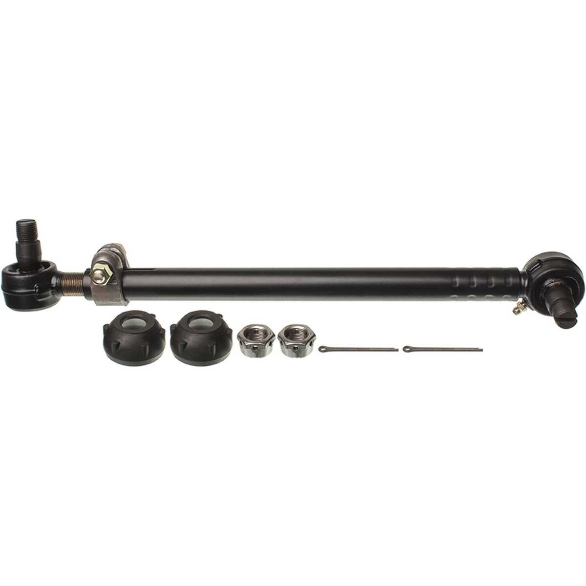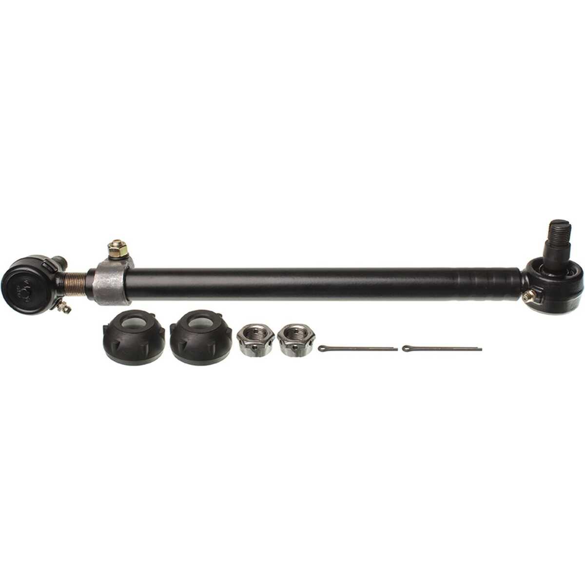Package Contents: 1 Drag Link Assy, 2 Dust Boots, 2 Castle Nuts, 2 Cotter Pins, 2 Grease Fittings