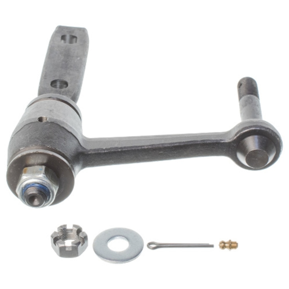 Package Contents: 1 Idler Arm with Bracket, 1 Castle Nut, 1 Cotter Pin, 1 Washer, 1 Grease Fitting