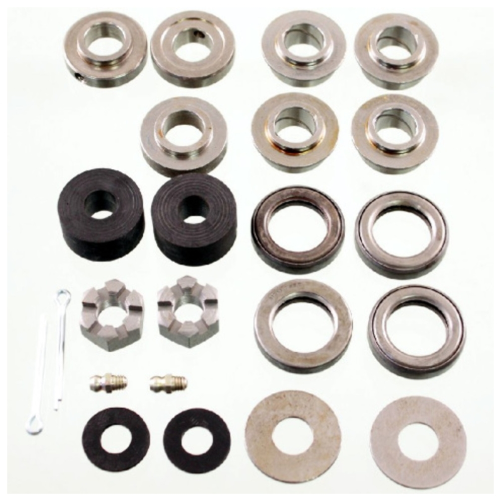 Package Contents: 2 Bushings, 7 Sleeves, 4 Bearings, 2 Rubber Washers, 2 Steel Washers, 2 Castle Nuts, 2 Cotter Pins, 2 Grease Fittings