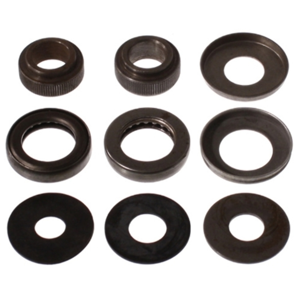 Package Contents: 2 Spacers, 2 Bearings, 2 Retaining Washers, 1 Washer, 2 Rubber Washers