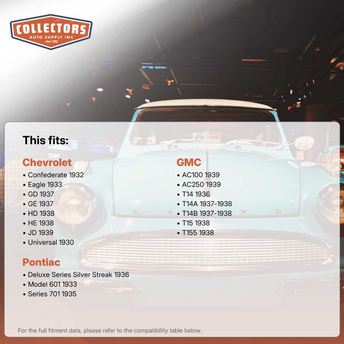 •Available for all popular models of classic and vintage cars and trucks (see below)