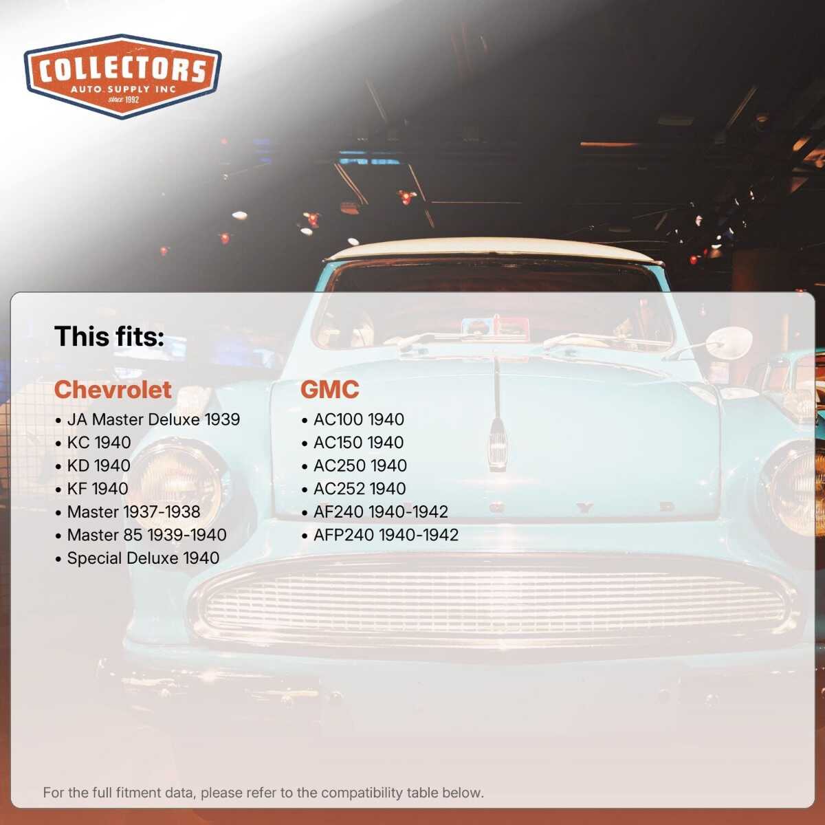 •Available for all popular models of classic and vintage cars and trucks (see below)