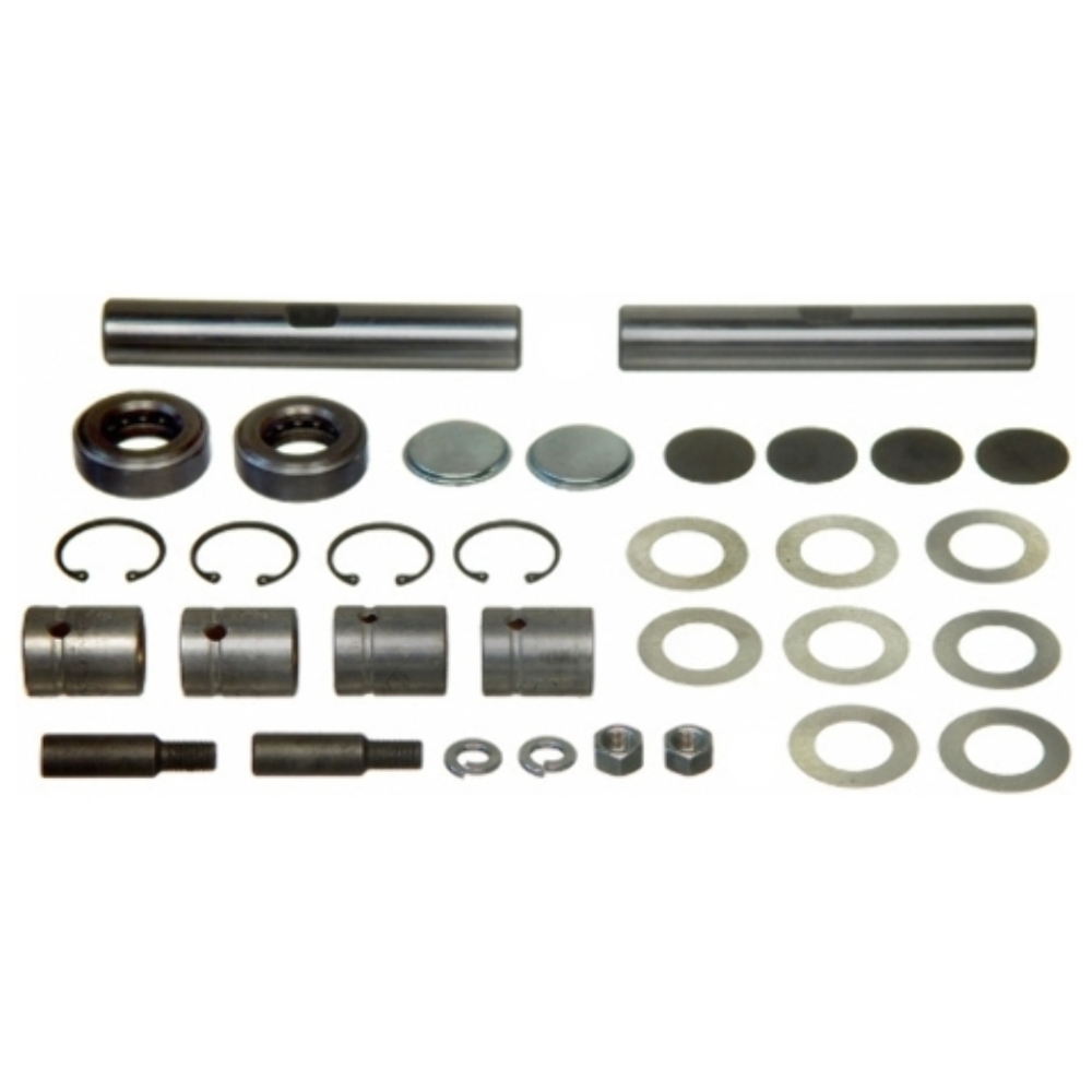 Package Contents: 2 Pins, 4 Bushings, 2 Bearings, 2 Lock Pins, 2 Lock Washers, 2 Nuts, 4 Welch Plugs, 2 Shoulder Caps, 4 Snap Rings, Asst Shims