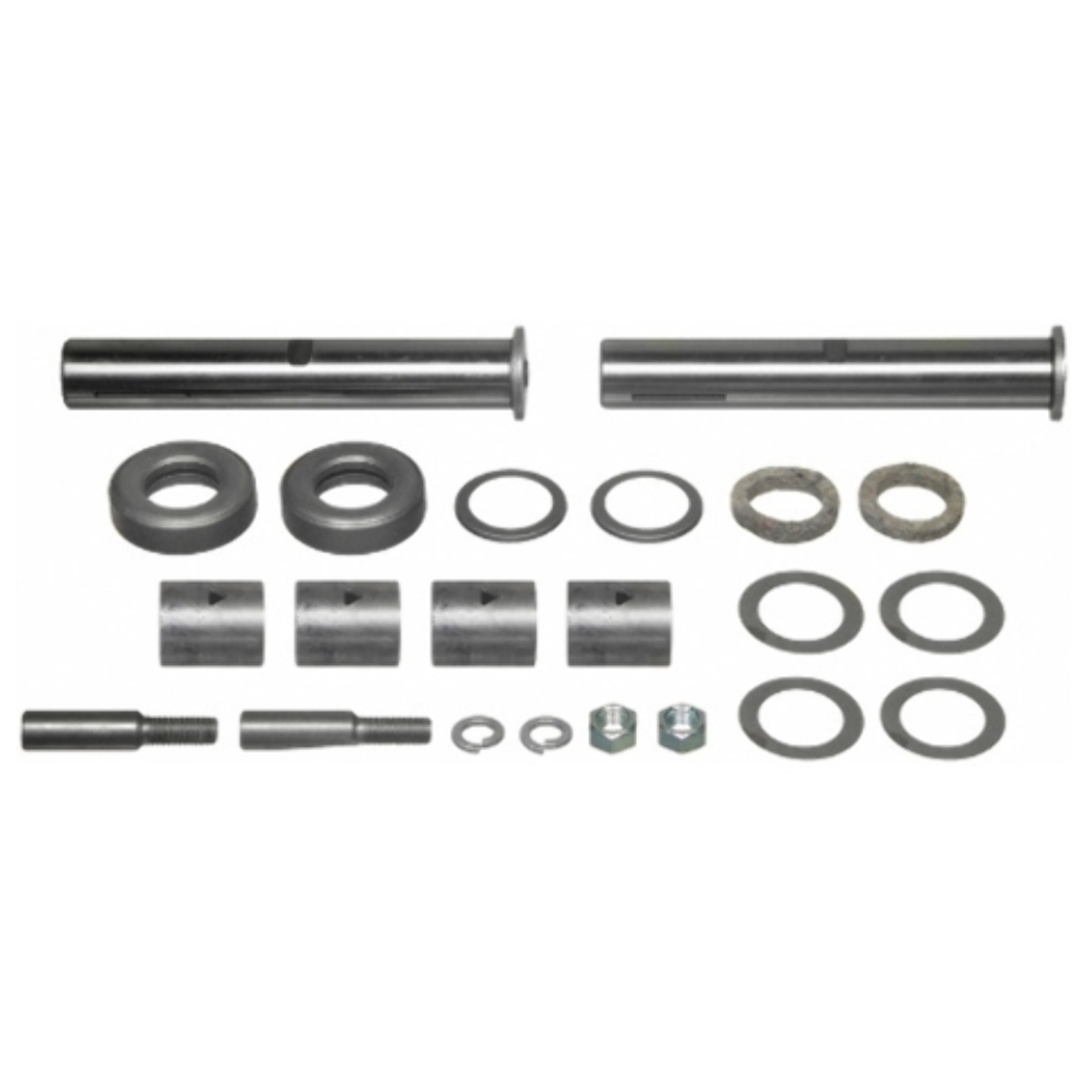 Package Contents: 2 King Pins, 4 Bushings, 2 Bearings, 2 Threaded Lock Pins, 2 Lock Washers, 2 Nuts, 2 Washers, 2 Felt Washers, Asst Shims