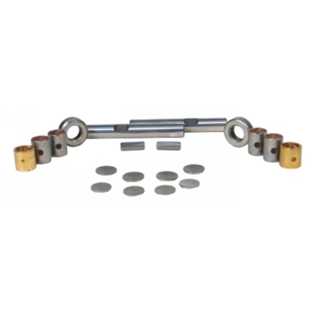 Most king pin sets include the pins, bushings, bearings, seals, and hardware needed for a complete rebuild. Verify kit contents in the product details.