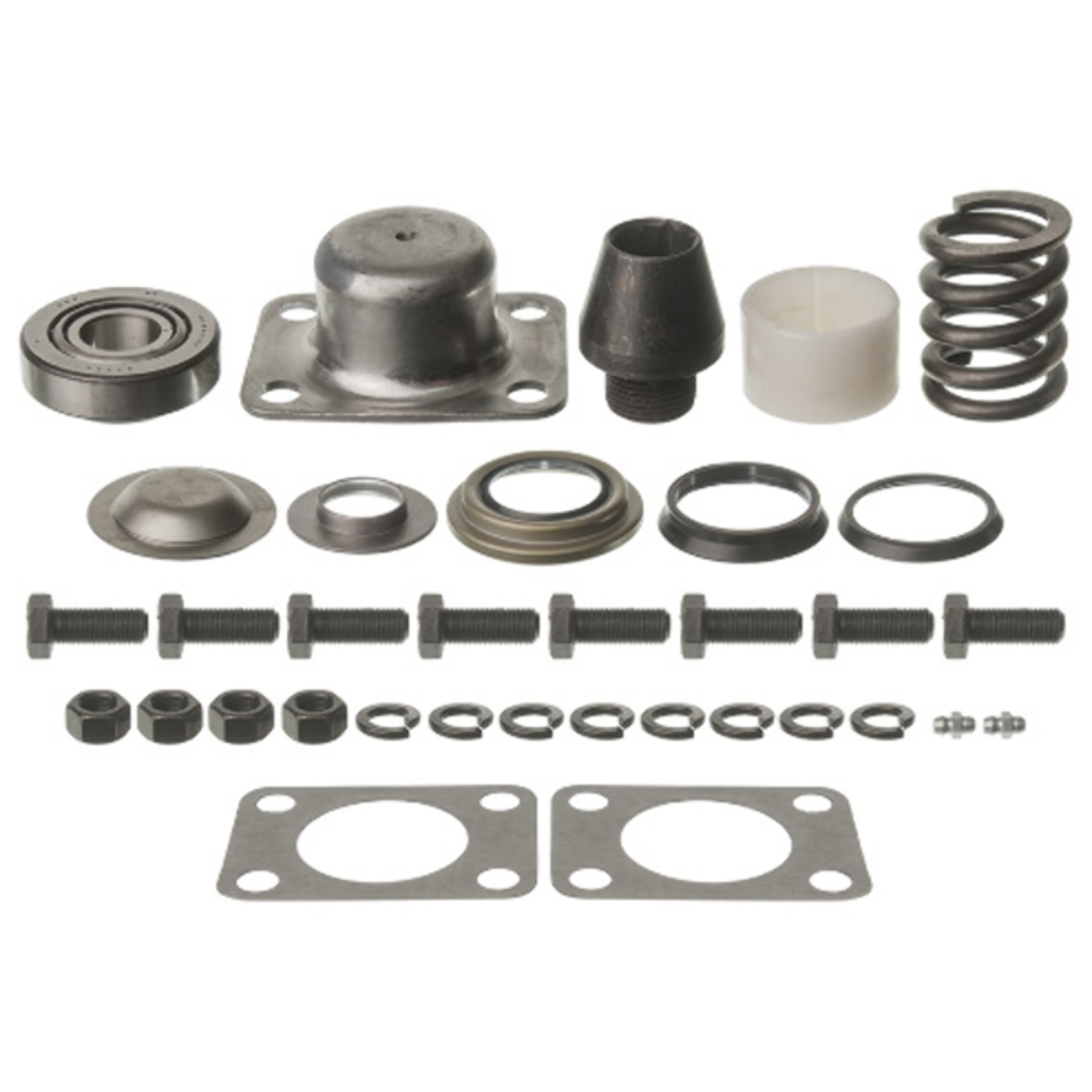 Package Contents: 1 Threaded Pin, 1 Bushing, 1 Bearing, 1 Spring, 2 Cover Plates, 3 Seals, 2 Gaskets, 1 Washer, 8 Bolts, 8 Lock Washers, 4 Nuts, 2 Grease Fittings