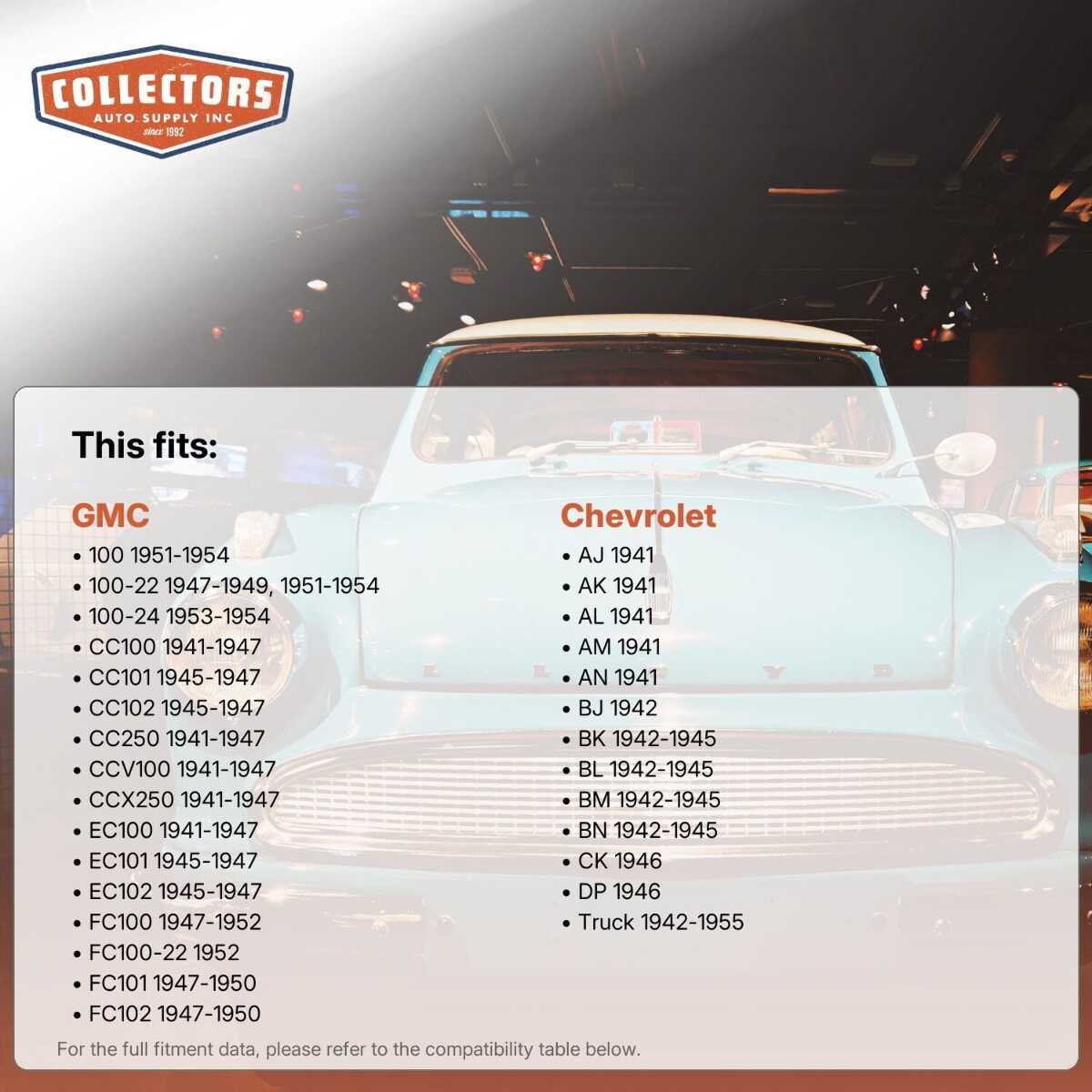 •Available for all popular models of classic and vintage cars and trucks (see below)