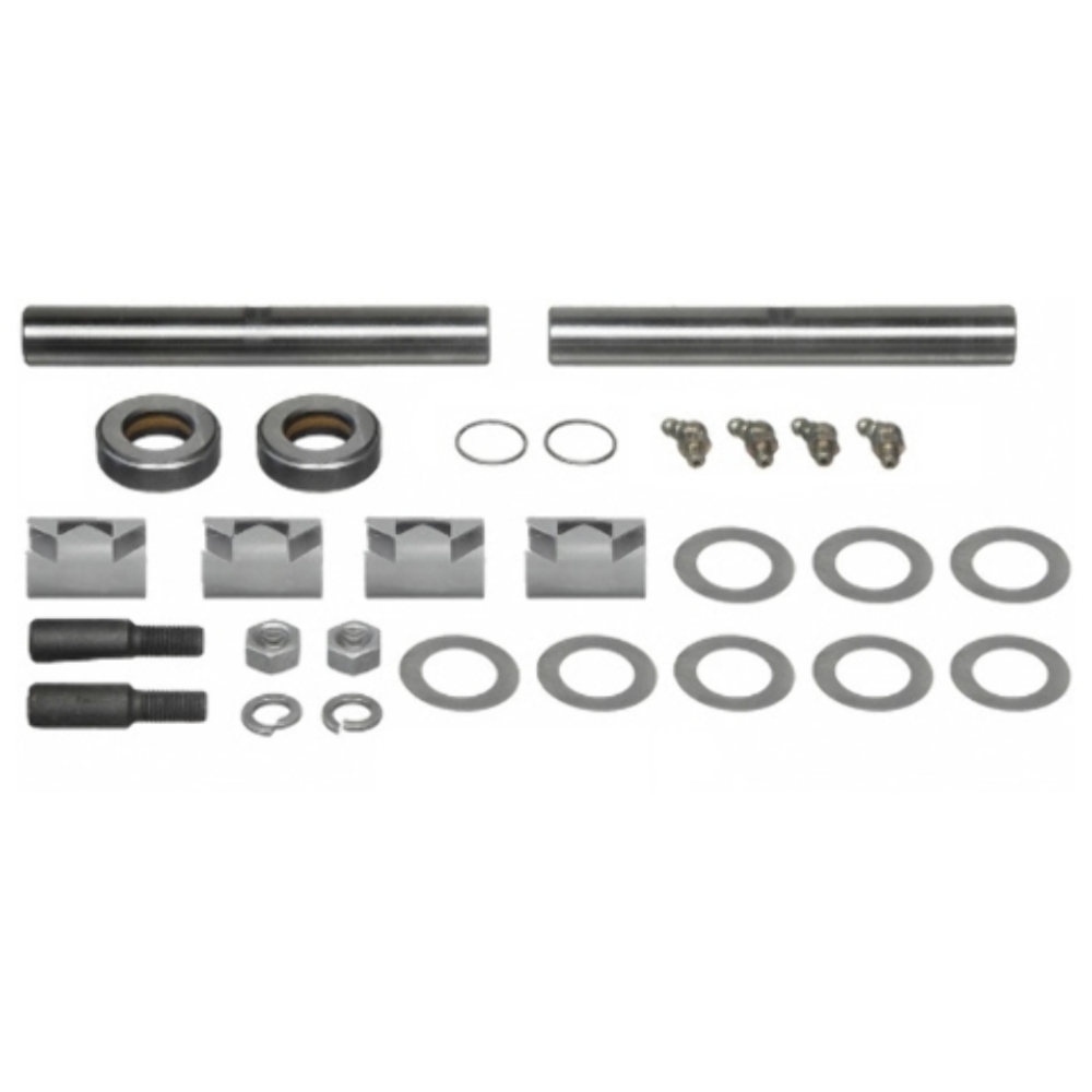 Package Contents: 2 King Pins, 4 Bushings, 2 Bearings, 2 Threaded Lock Pins, 2 Lock Washers, 2 Nuts, 2 O Rings, 4 Grease Fittings, Asst Shims