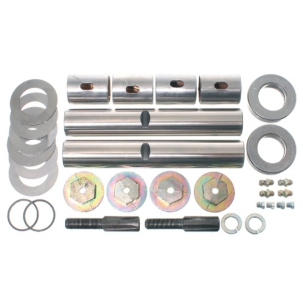 Package Contents: 2 Pins, 4 Bushings, 2 Bearings, 4 Threaded Plugs, 2 Lock Pins, 2 Lock Washers, 2 Seals, 4 Grease Plugs, 4 Grease Fittings, Asst Shims