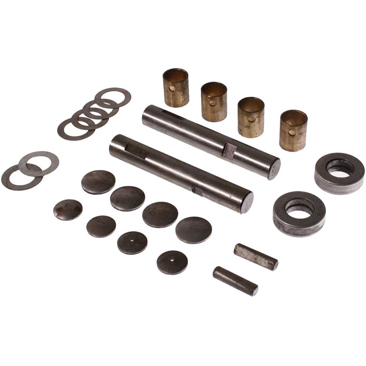Package Contents: 2 King Pins, 2 Bearings, 4 Bushings, 4 Caps, 4 Welch Plugs, 2 Lock Pins, Asst Shims.