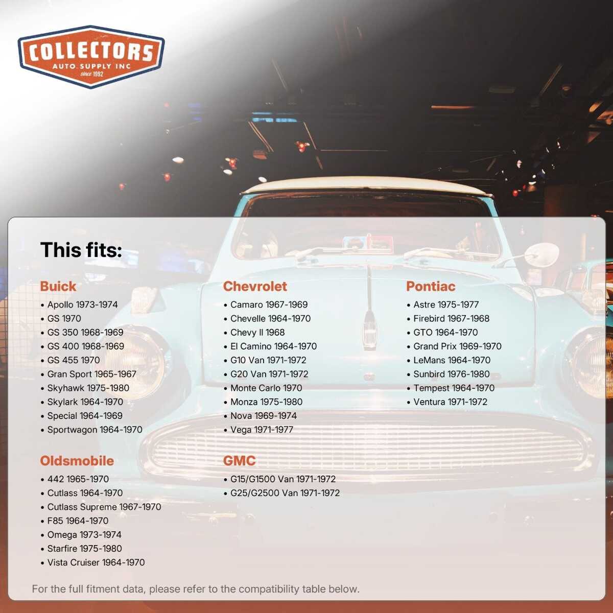 • Available for all popular models of classic and vintage vehicles (see below)