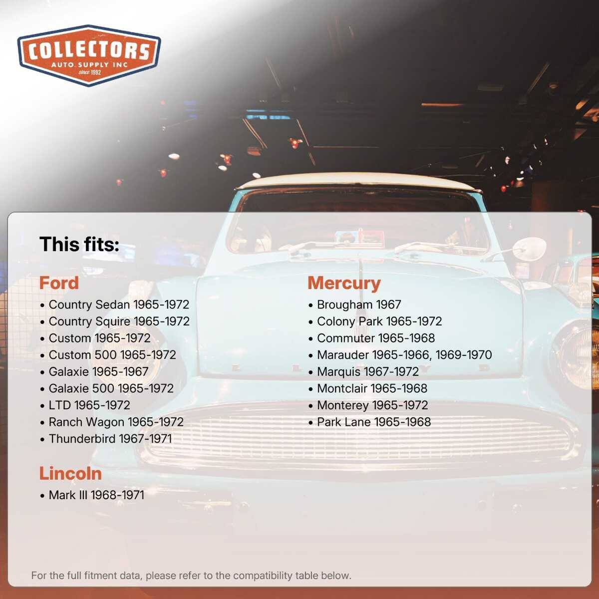 • Available for all popular models of classic and vintage vehicles (see below)