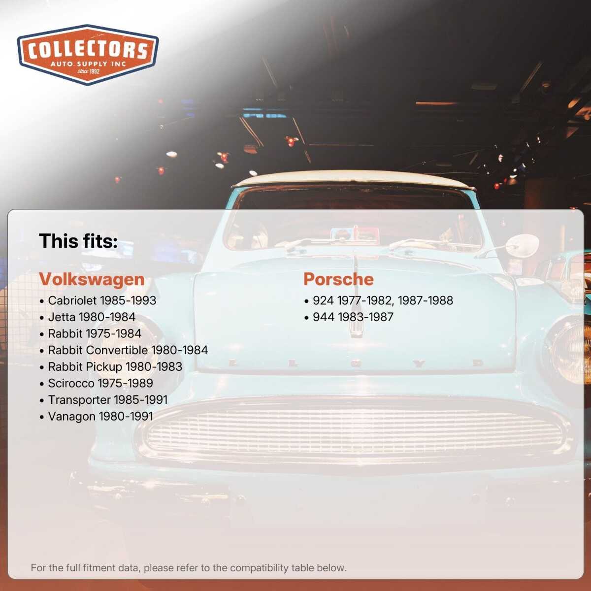 • Available for all popular models of classic and vintage vehicles (see below)