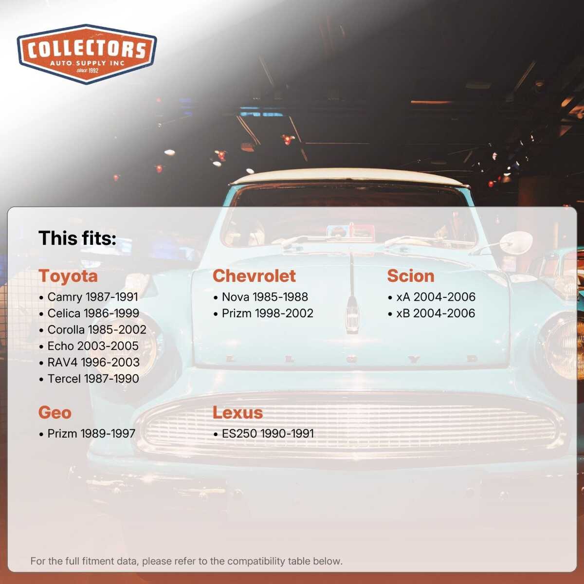 • Available for all popular models of classic and vintage vehicles (see below)