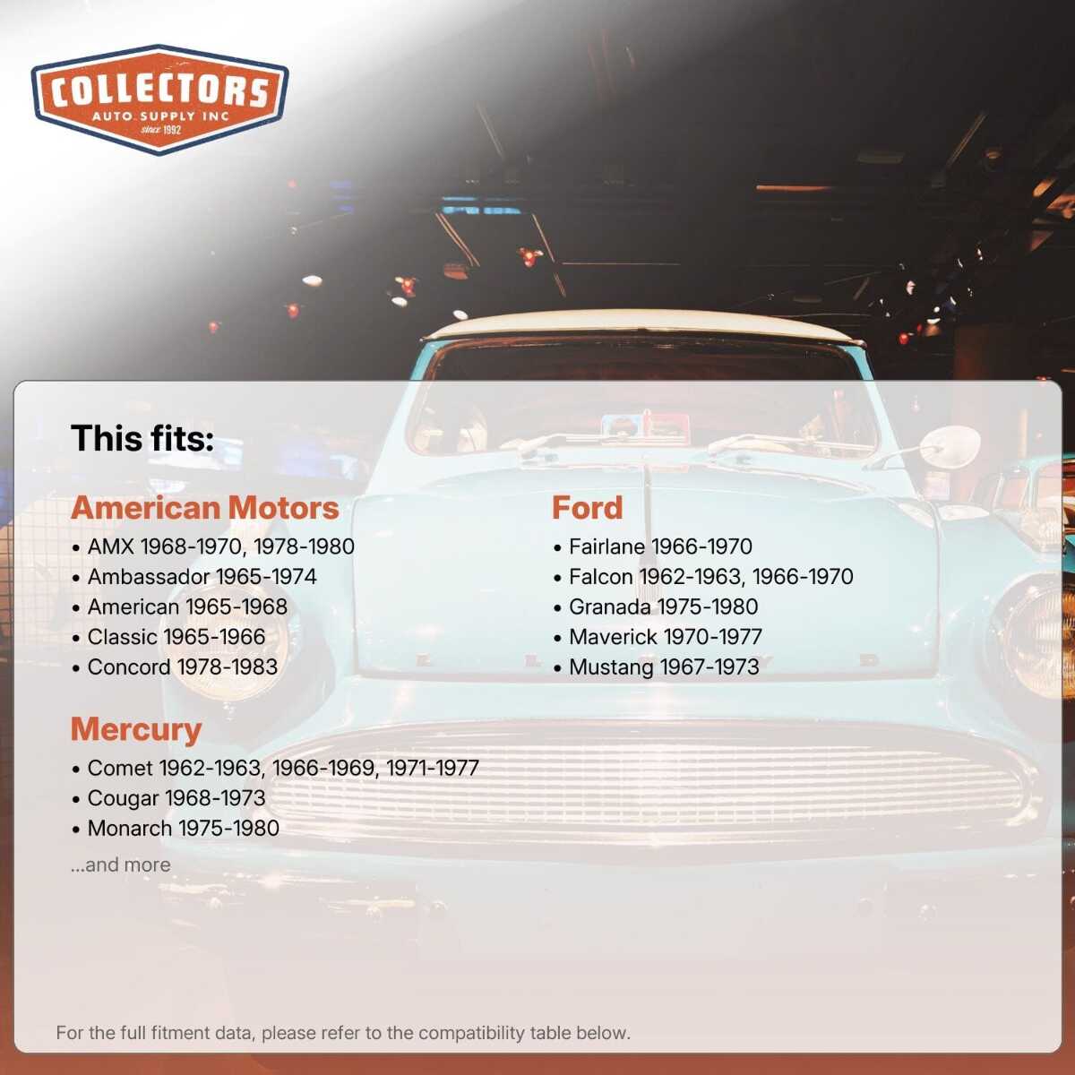 This auto part is covered by Collectors Auto Supply's three-dimensional promise — you'll get the right part the first time, you can talk to us, and with over 25 years in business and 100,000+ customer transactions, you can trust us to be the right choice to fuel your passion.