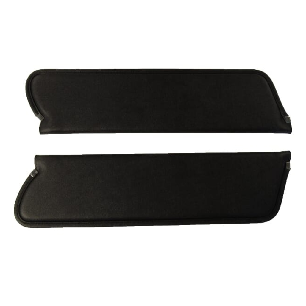 This Sun Visor covers the Front Left, Right area of the vehicle, is Black in color, and is made of a Cardboard/Fiberboard material. This kit will arrive in 2 pieces, and is built to resemble to originals as closely as possible.