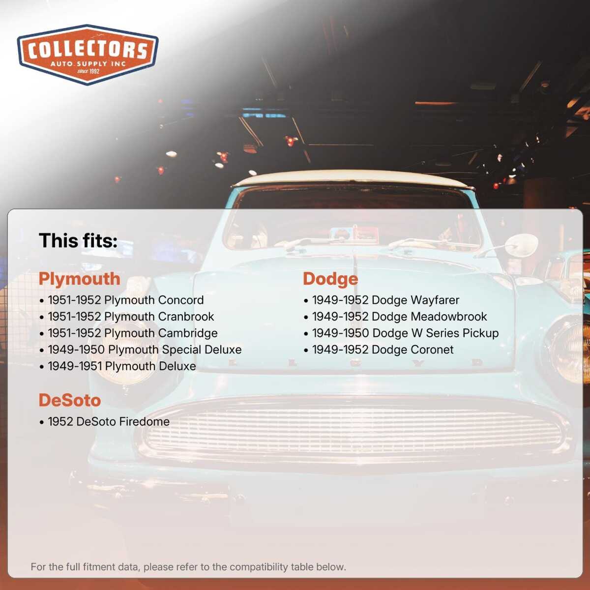 You can purchase the Trunk Floor Mat for 1951 Plymouth Cambridge directly from Collectors Auto Supply, where we specialize in classic car restoration parts.