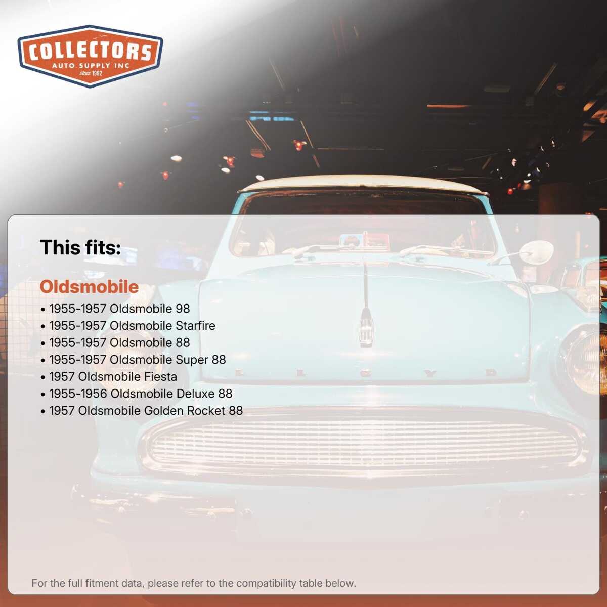 You can purchase this product directly from Collectors Auto Supply, where we specialize in classic car restoration parts and accessories. Finding the perfect part for your classic car can be difficult, and even frustrating. And let us be honest. What makes it worse is a general lack of customer love in the industry. That is why we are here, and that is why we are different. We are car people just like you, and we know what you need. And if we do not already know it, we're listening. So, contact us if you need help finding a part, or have an idea for how to improve our website, or anything else. Or if you want to do it the old-fashioned way, give us a call at 1 (800) 414-4462.