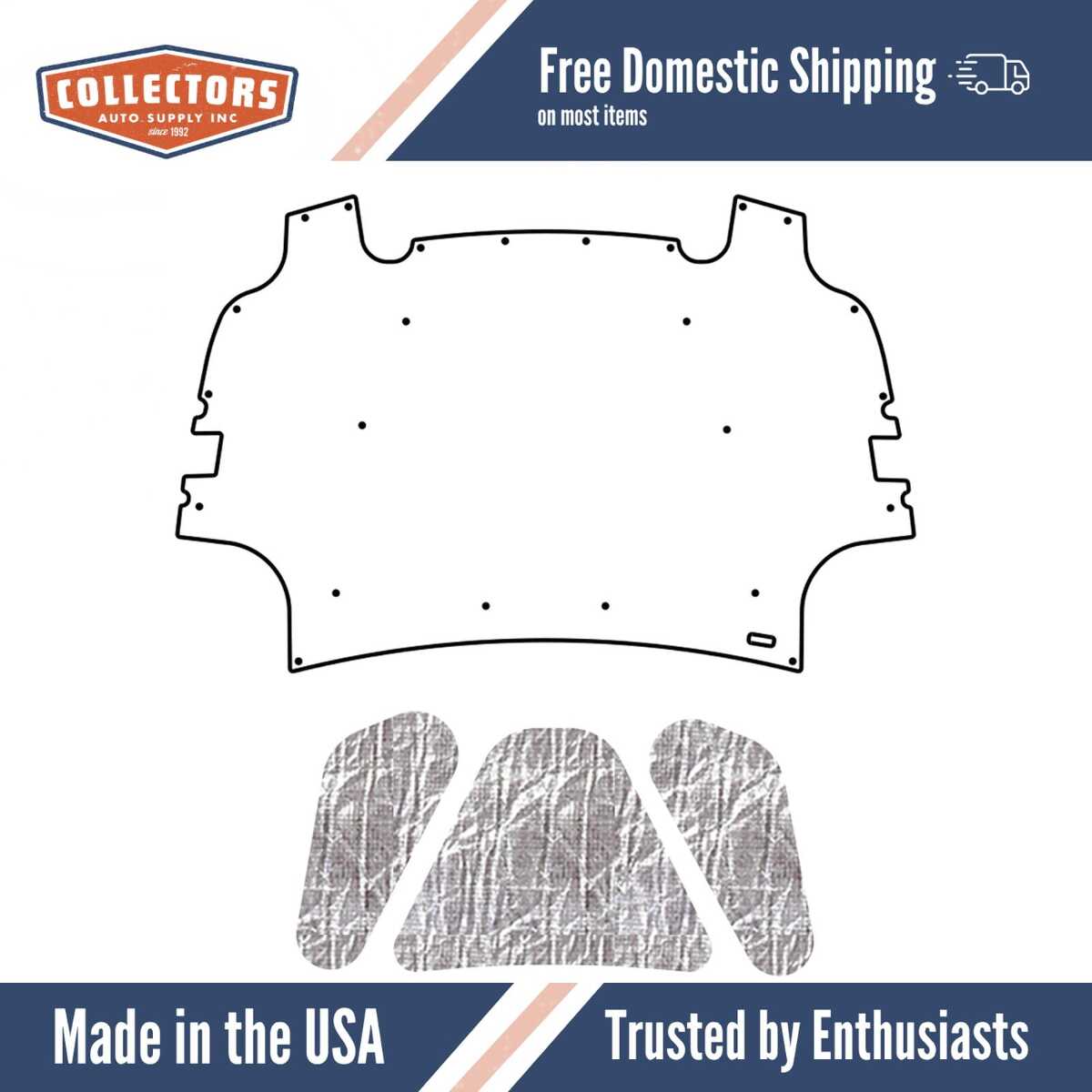 A quality hood insulation pad reduces engine noise and protects the hood finish from heat damage.