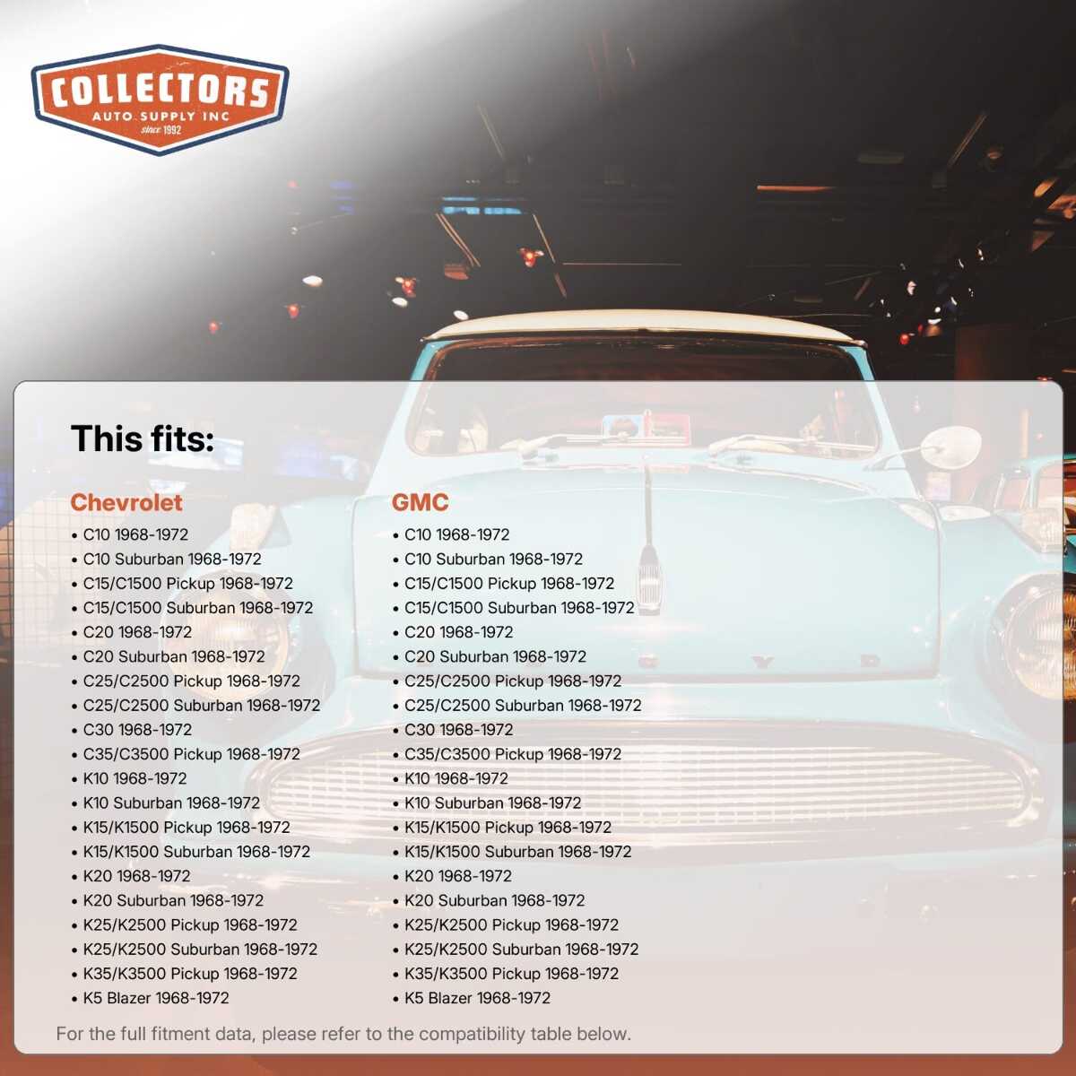 You can purchase this product directly from Collectors Auto Supply, where we specialize in classic car restoration parts and accessories. Finding the perfect part for your classic car can be difficult, and even frustrating. And let us be honest. What makes it worse is a general lack of customer love in the industry. That is why we are here, and that is why we are different. We are car people just like you, and we know what you need. And if we do not already know it, we're listening. So, contact us if you need help finding a part, or have an idea for how to improve our website, or anything else. Or if you want to do it the old-fashioned way, give us a call at 1 (800) 414-4462.