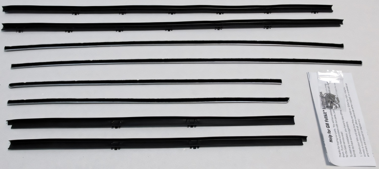 Kits vary by application and may include inner and outer window sweeps, outer sweeps only, or driver- or passenger-side components. Please review the product description carefully to confirm exactly which pieces are included for your specific vehicle.