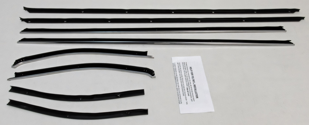 A window sweep kit is a set of replacement seals for classic car doors and windows. These sweeps help keep out water, dust, and wind while allowing the window glass to move smoothly. Replacing worn sweeps restores proper sealing, reduces interior noise, and protects door panels from moisture damage.