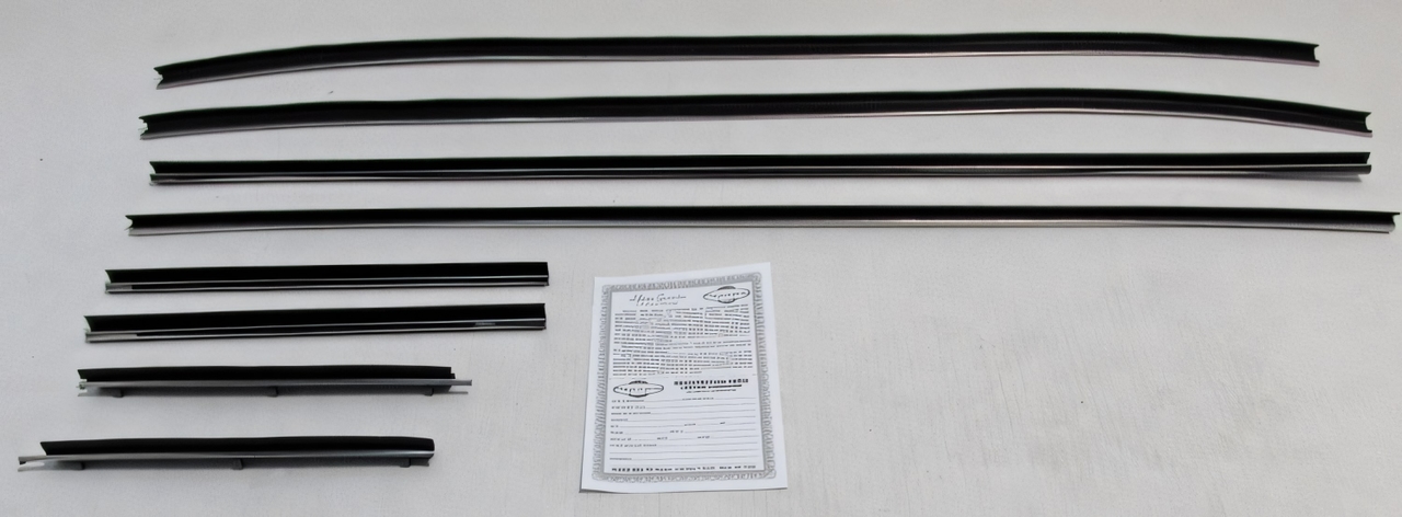 A window sweep kit is a set of replacement seals for classic car doors and windows. These sweeps help keep out water, dust, and wind while allowing the window glass to move smoothly. Replacing worn sweeps restores proper sealing, reduces interior noise, and protects door panels from moisture damage.