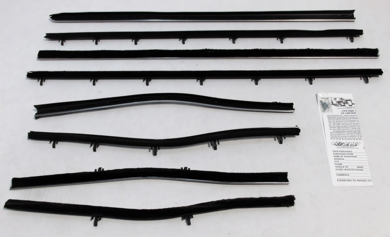 A window sweep kit is a set of replacement seals for classic car doors and windows. These sweeps help keep out water, dust, and wind while allowing the window glass to move smoothly. Replacing worn sweeps restores proper sealing, reduces interior noise, and protects door panels from moisture damage.