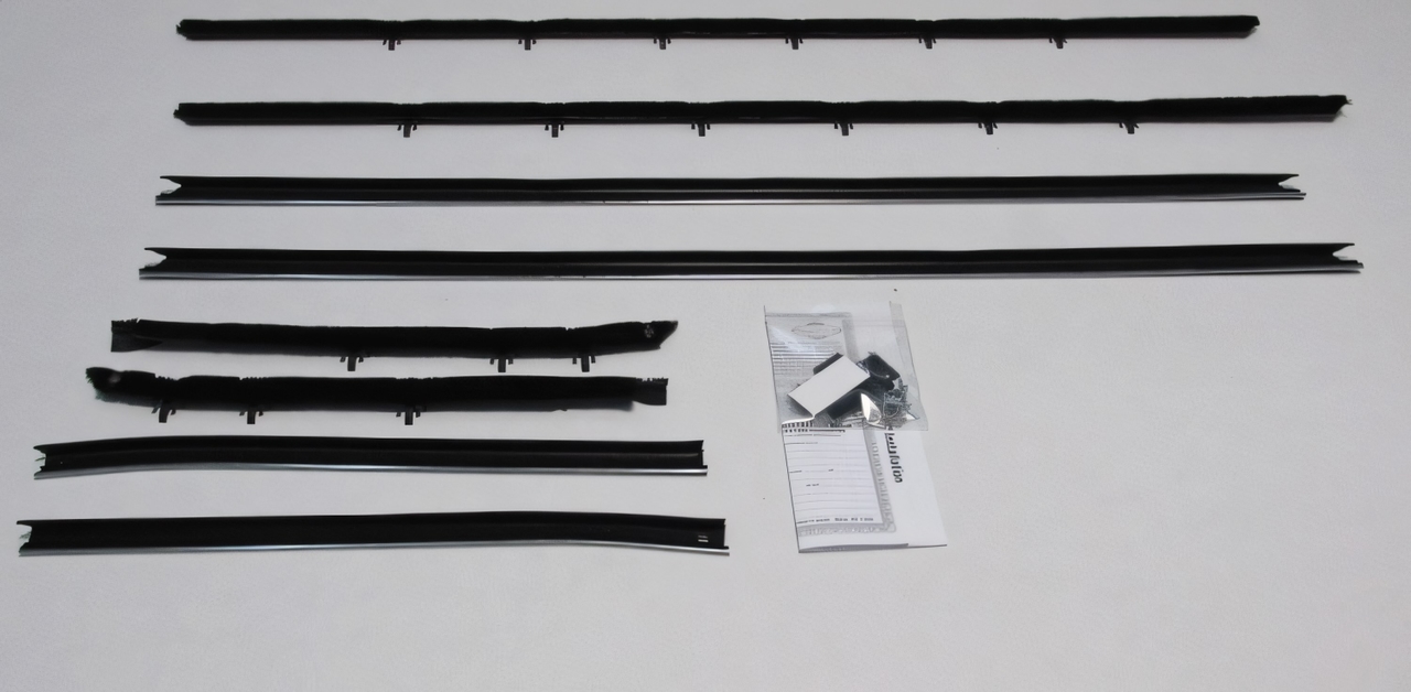 A window sweep kit is a set of replacement seals for classic car doors and windows. These sweeps help keep out water, dust, and wind while allowing the window glass to move smoothly. Replacing worn sweeps restores proper sealing, reduces interior noise, and protects door panels from moisture damage.