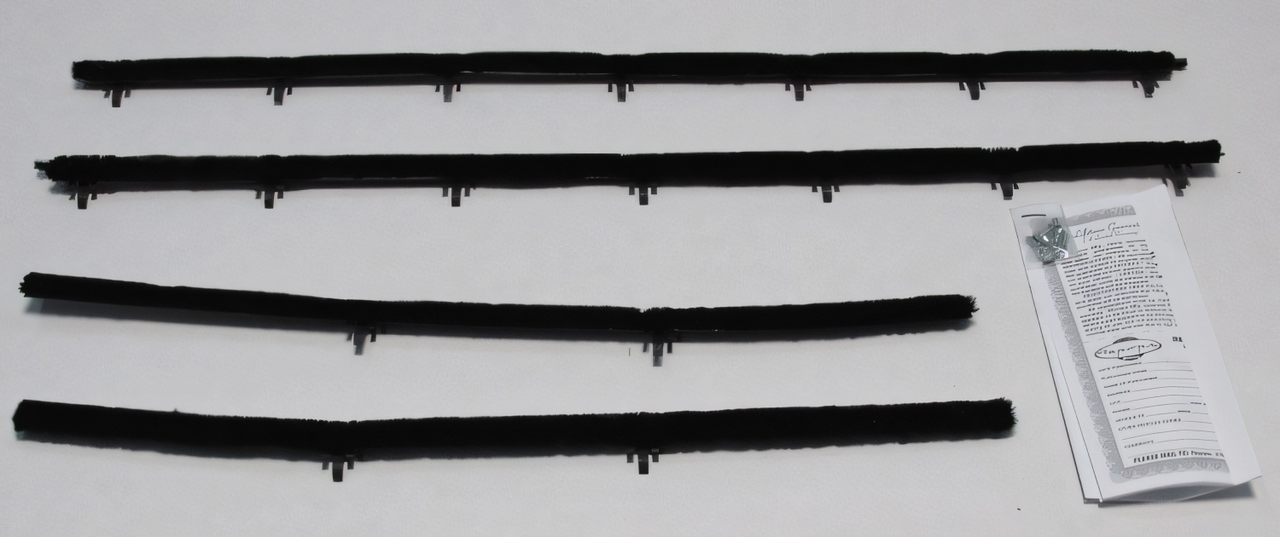 A window sweep kit is a set of replacement seals for classic car doors and windows. These sweeps help keep out water, dust, and wind while allowing the window glass to move smoothly. Replacing worn sweeps restores proper sealing, reduces interior noise, and protects door panels from moisture damage.