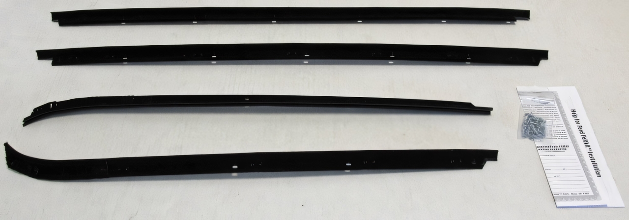 A window sweep kit is a set of replacement seals for classic car doors and windows. These sweeps help keep out water, dust, and wind while allowing the window glass to move smoothly. Replacing worn sweeps restores proper sealing, reduces interior noise, and protects door panels from moisture damage.