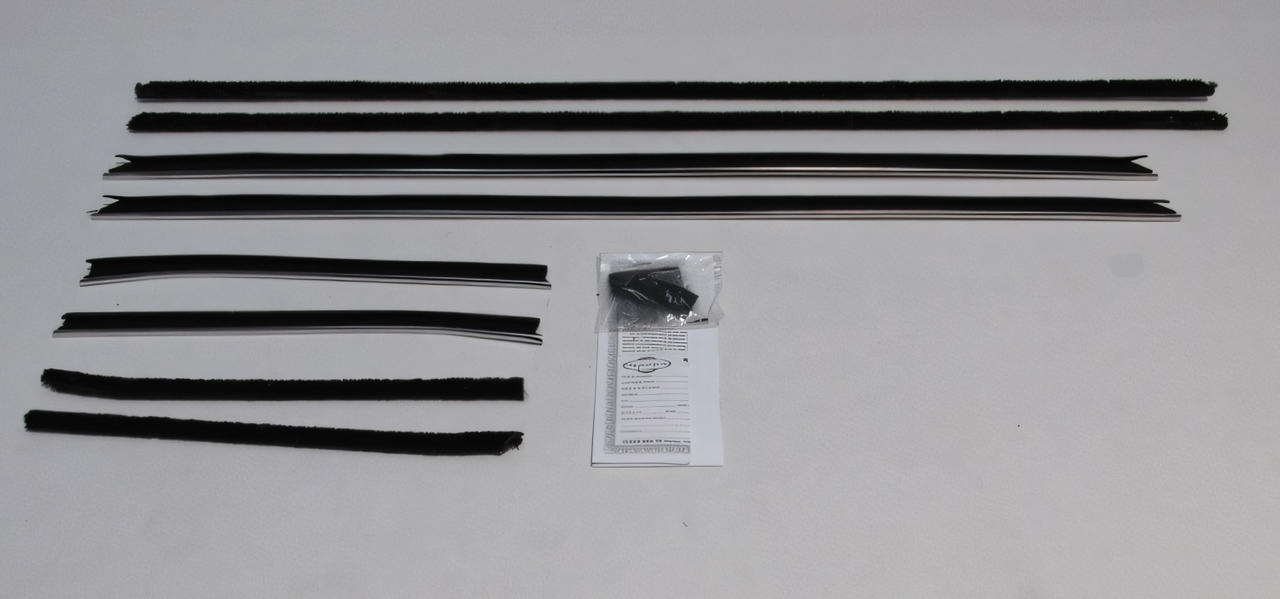 Kits vary by application and may include inner and outer window sweeps, outer sweeps only, or driver- or passenger-side components. Please review the product description carefully to confirm exactly which pieces are included for your specific vehicle.