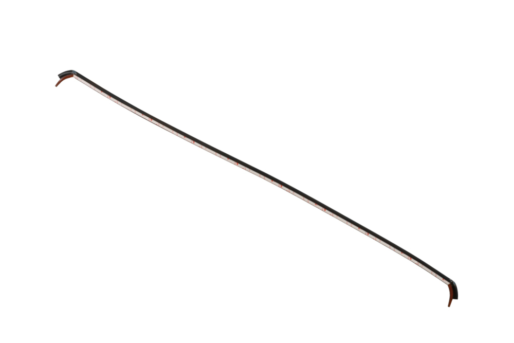 Upper underside windshield molding. It has pressure sensitive tape. "This item is designed to be installed during glass replacement. Precision recommends contacting a professional auto glass technician for installation."