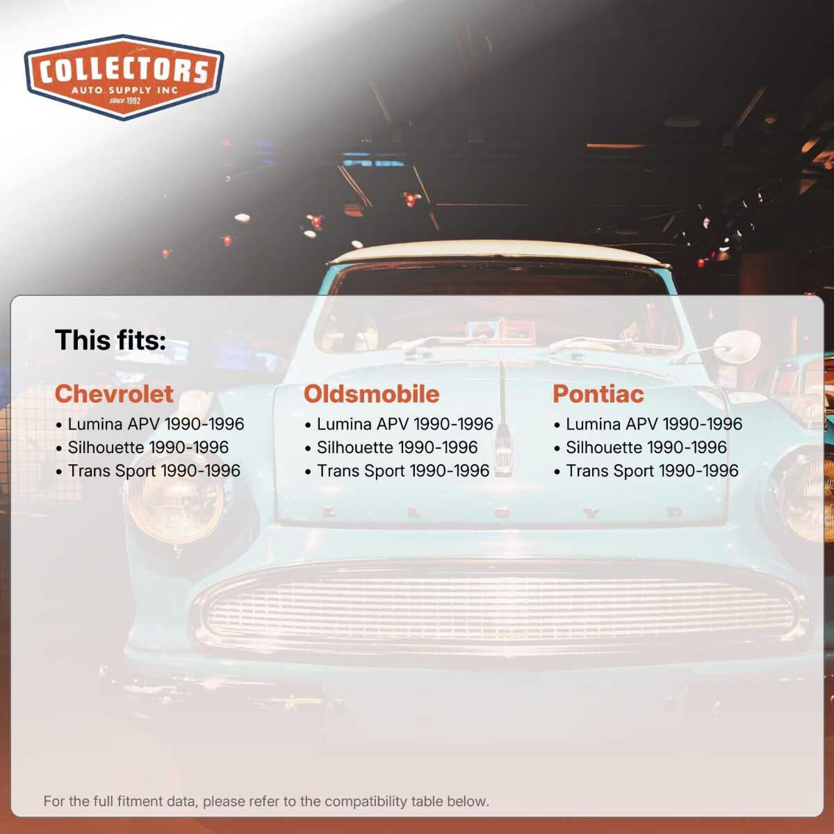 You can purchase this product directly from Collectors Auto Supply, where we specialize in classic car restoration parts and accessories. Finding the perfect part for your classic car can be difficult, and even frustrating. And let us be honest. What makes it worse is a general lack of customer love in the industry. That is why we are here, and that is why we are different. We are car people just like you, and we know what you need. And if we do not already know it, we're listening. So, contact us if you need help finding a part, or have an idea for how to improve our website, or anything else. Or if you want to do it the old-fashioned way, give us a call at 1 (800) 414-4462.